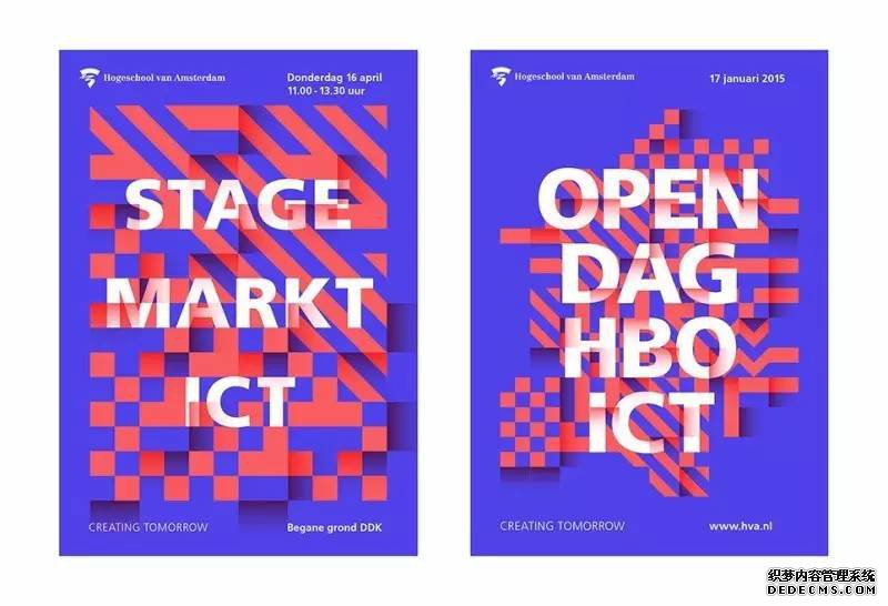 这是为阿姆斯特丹大学的应用科学项目ICT设计的视觉形象。ICT希望每个学生都可以在学习的过程中,能为自己选择适合的学习内容。从这个愿景出发,设计师采用了四个基本图形,并且将其灵活运用在项目标志、书籍、海报等设计。